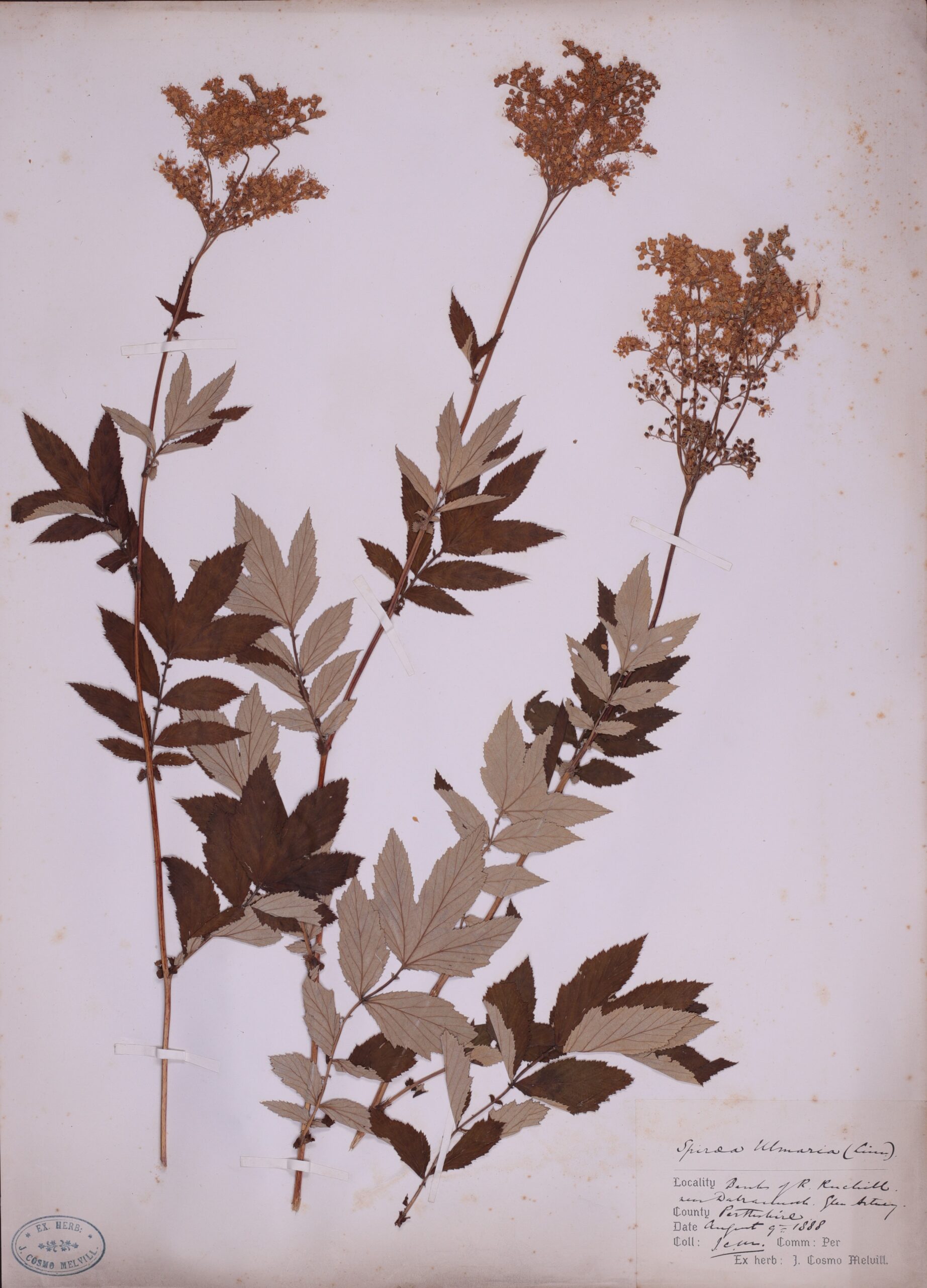 Mae’r sbesimen hwn o’r llysieufa yn cyfleu nodweddion y planhigyn i’r dim gan ei fod yn dangos ochr isaf ariannaidd y ddeilen, y siâp a’r blodau bach. I’r rhai hynny ohonoch sydd â llygad barcud ac sydd wedi dechrau darllen y label, efallai y byddwch yn sylwi bod ei enw gwyddonol, sef Spiraea ulmaria, ychydig yn wahanol i’r enw sydd ganddo ‘nawr. Y rheswm dros hyn yw fod rhywogaethau planhigion wedi cael enwau amrywiol gan fotanegwyr gwahanol dros y blynyddoedd, ond erbyn heddiw mae eu henwau’n seiliedig ar DNA y planhigyn – sef un o’r rhesymau niferus dros gadw’r casgliadau llysieufaoedd hanesyddol hyn fel adnodd ymchwil.