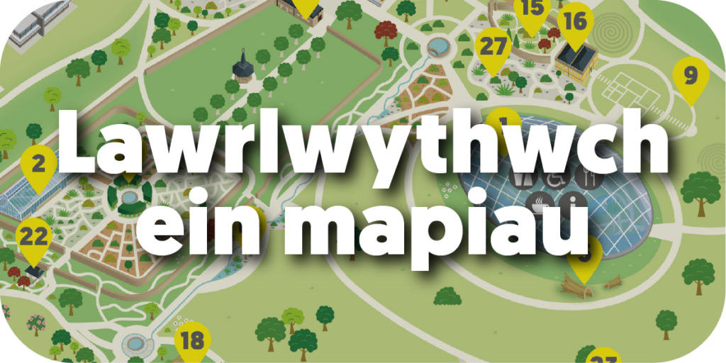 - Llwybr Mwsogl – Mae Cymru’n gyfoethog mewn bryoffytau! Defnyddiwch y canllaw hwn i archwilio’r rhywogaethau mwsogl sy’n tyfu o amgylch yr Ardd Fotaneg.